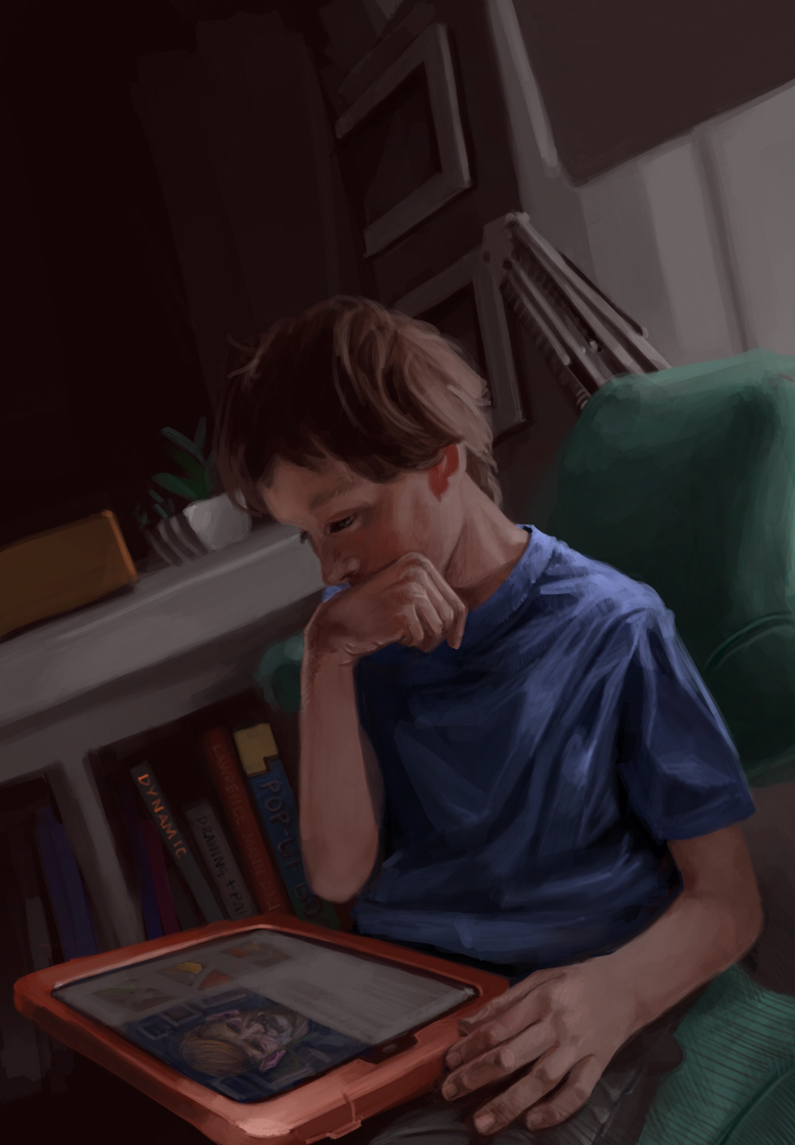 Copyright © Lawrence Mann. Boy With Tablet Study. Concept Art Sketch created in Procreate on the iPad.