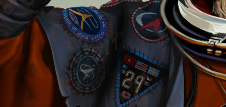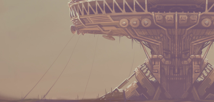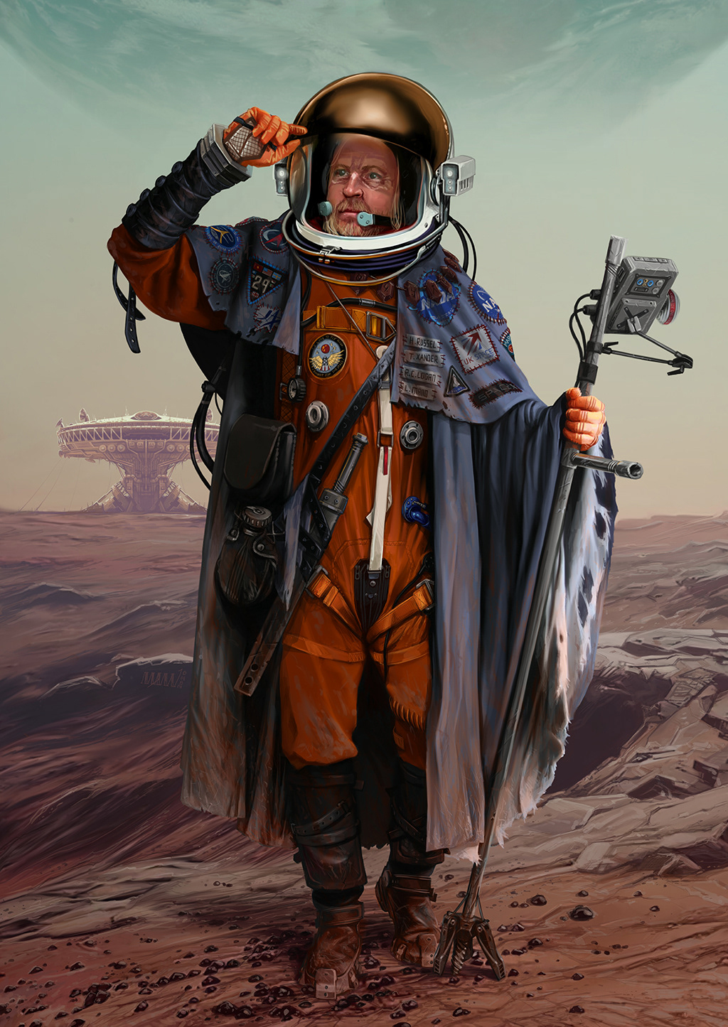 Copyright © Lawrence Mann. The Traveller. Large scale Sci-fi painting created in both Photoshop & Corel Painter.